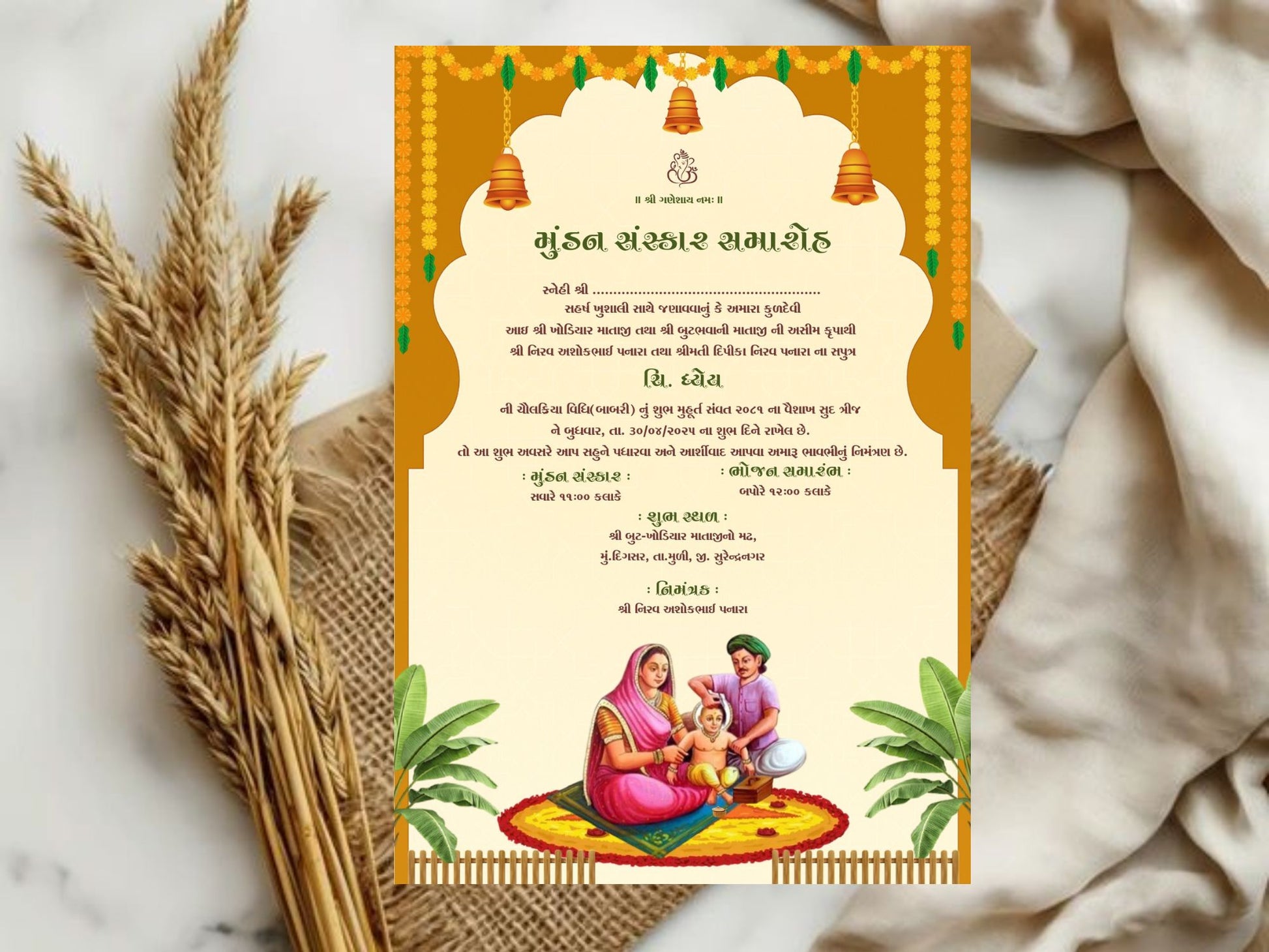 Traditional Mundan Sanskar Invitation Card | Hindu Baby Ceremony Digital Invite