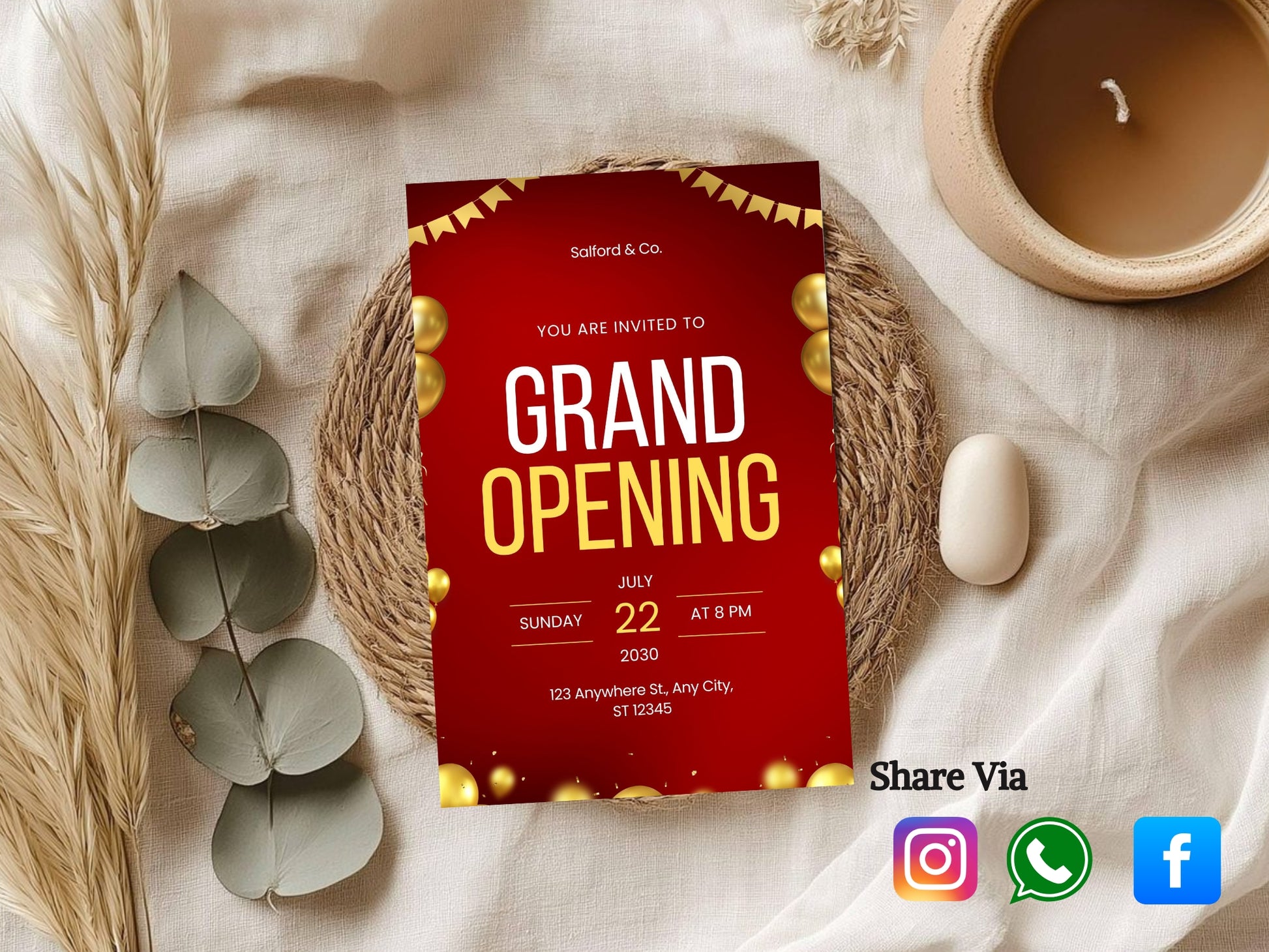 Minimal Grand Opening Card Template | Modern Simple Business Launch Invitation | Printable & Editable Design