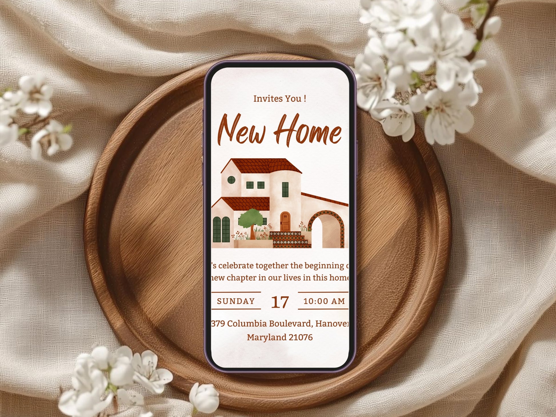 Red Theme Housewarming Card – Bold Elegant New Home Invitation – Printable Template
