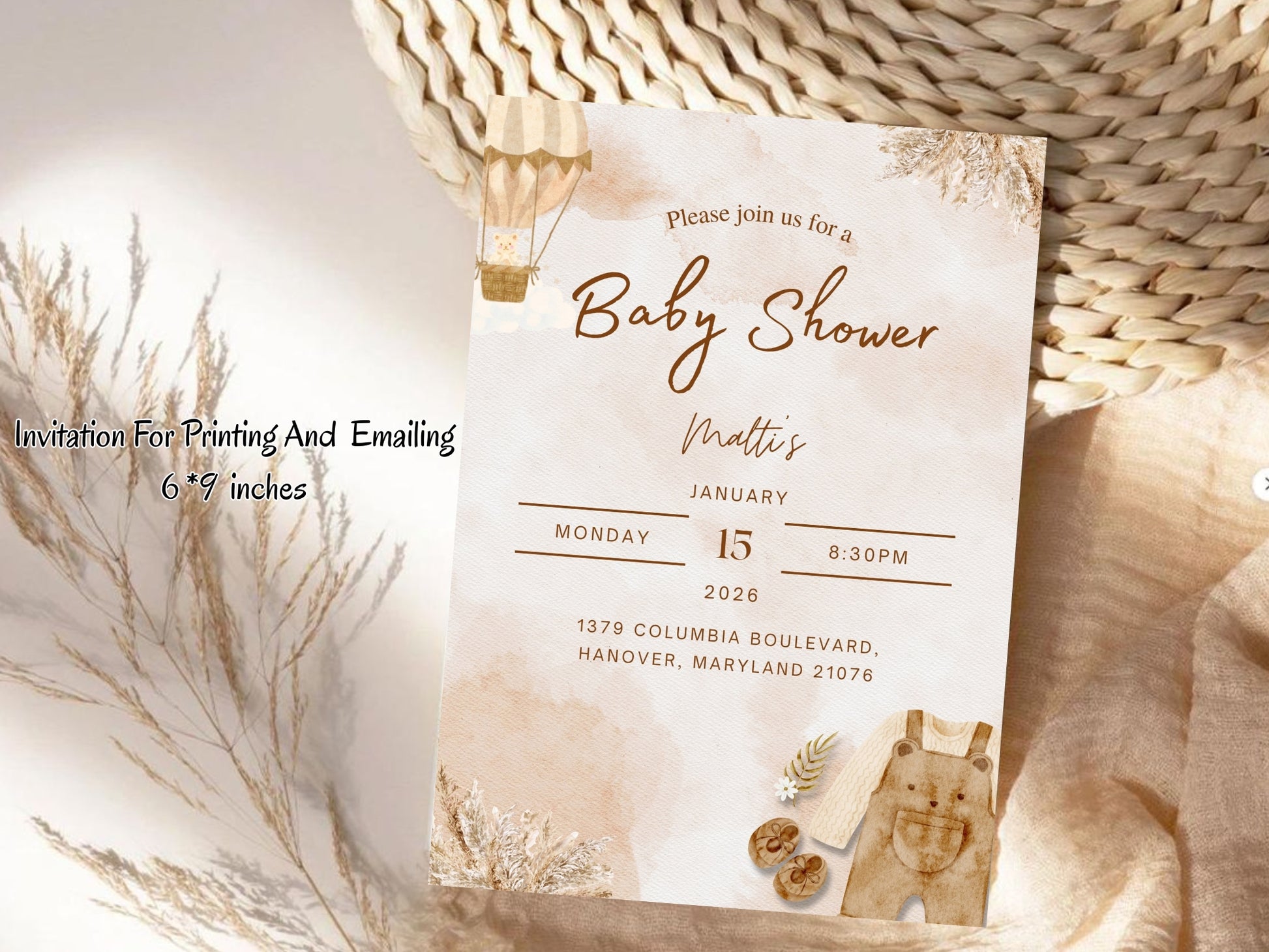 Simple Elegant Baby Shower Card Template – Minimal Neutral Baby Shower Invitation – Printable Digital Download