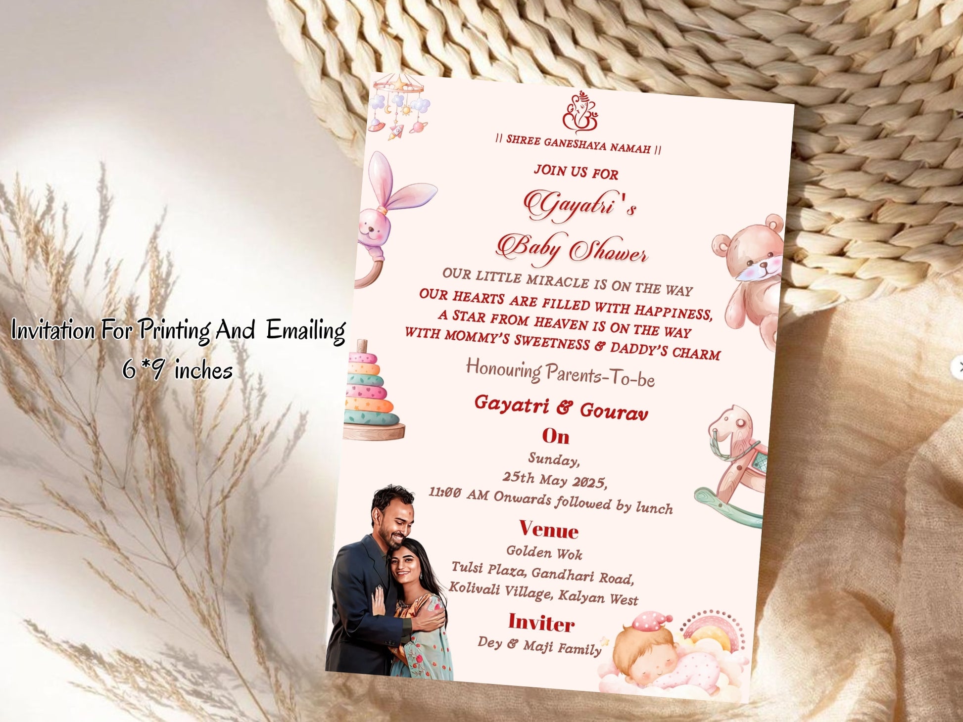 Printed on high-quality premium cardstock, this baby shower card offers a smooth matte finish for a luxurious touch. The inside is blank, giving you plenty of space to write your own heartfelt message.