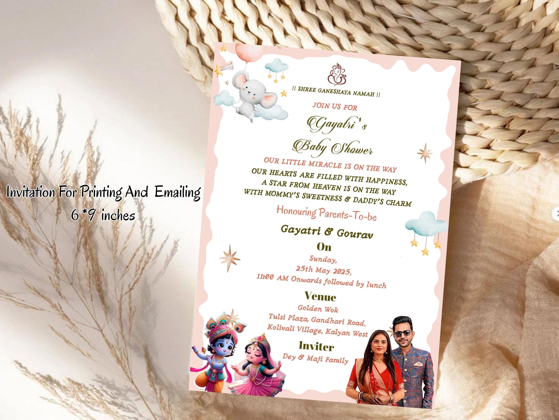 Krishna Theme Baby Shower Invitation – Cute Hindu Baby Shower Card – Printable Template