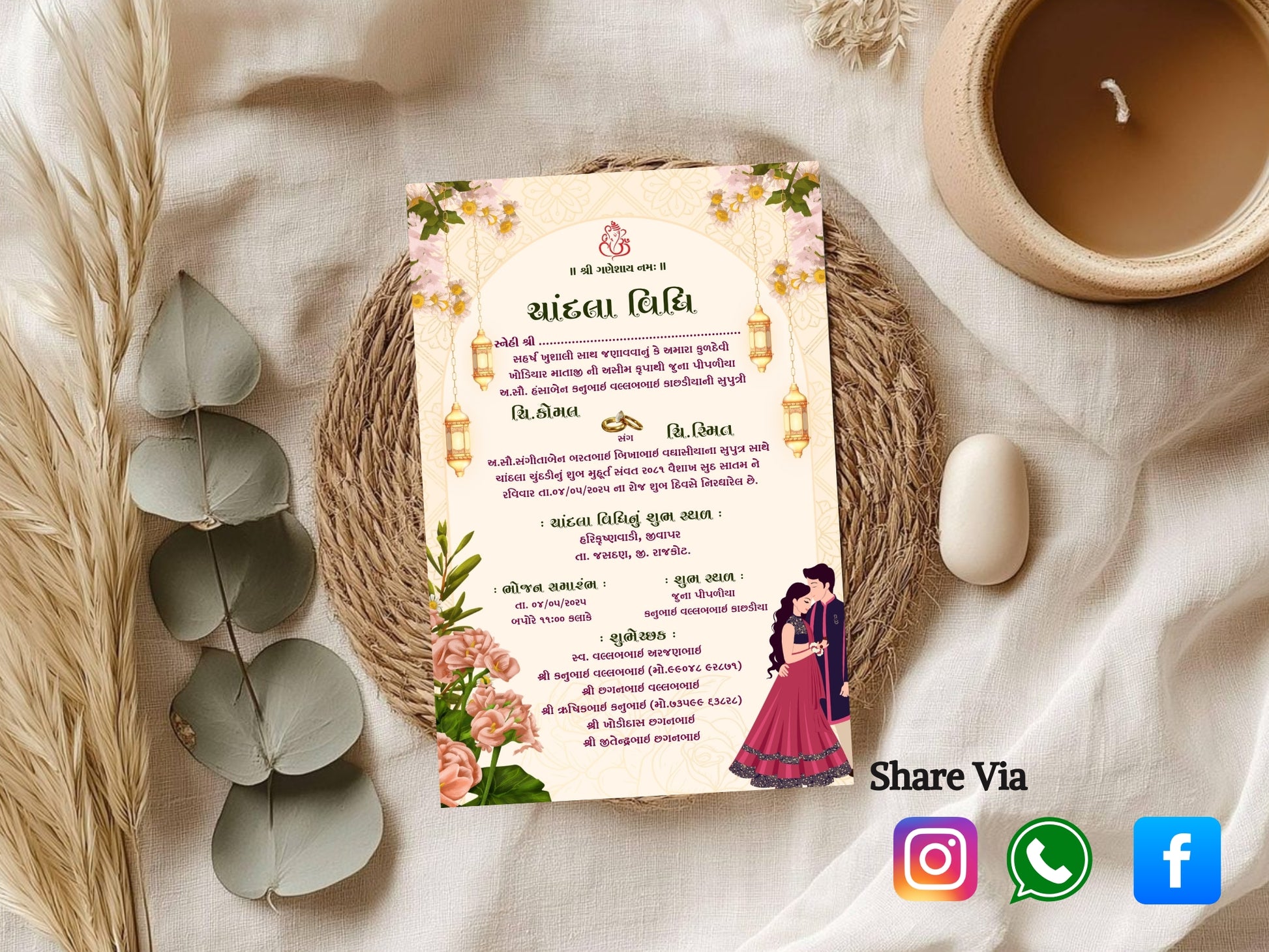 Celebrate your Chandla Vidhi ceremony in regal style with our Royal Theme Chandla Vidhi Card Design. Designed with luxury and tradition in mind, this card brings a sophisticated and grand touch to your invitations.