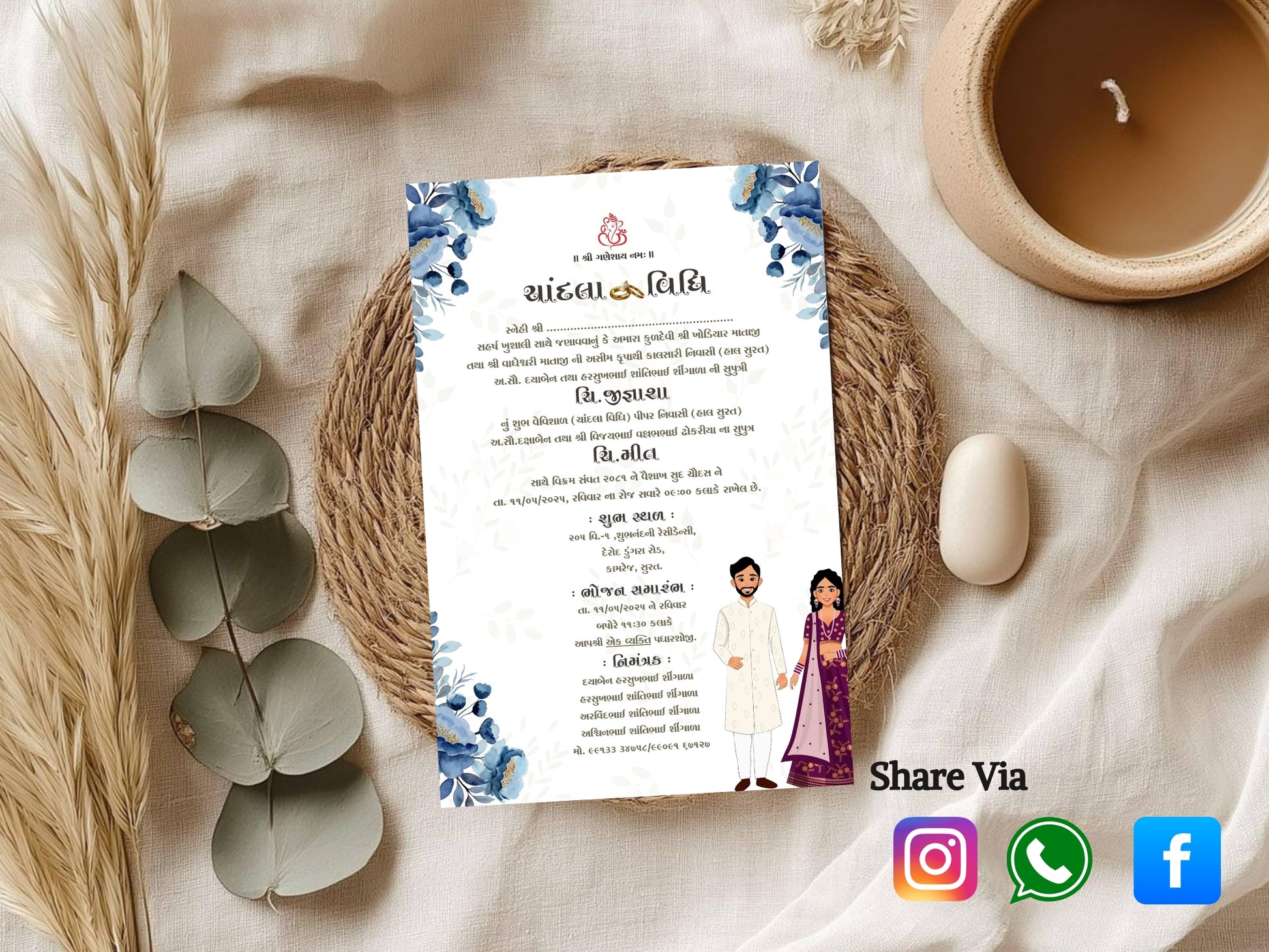 Celebrate your Chandla Vidhi ceremony in regal style with our Royal Theme Chandla Vidhi Card Design. Designed with luxury and tradition in mind, this card brings a sophisticated and grand touch to your invitations.
