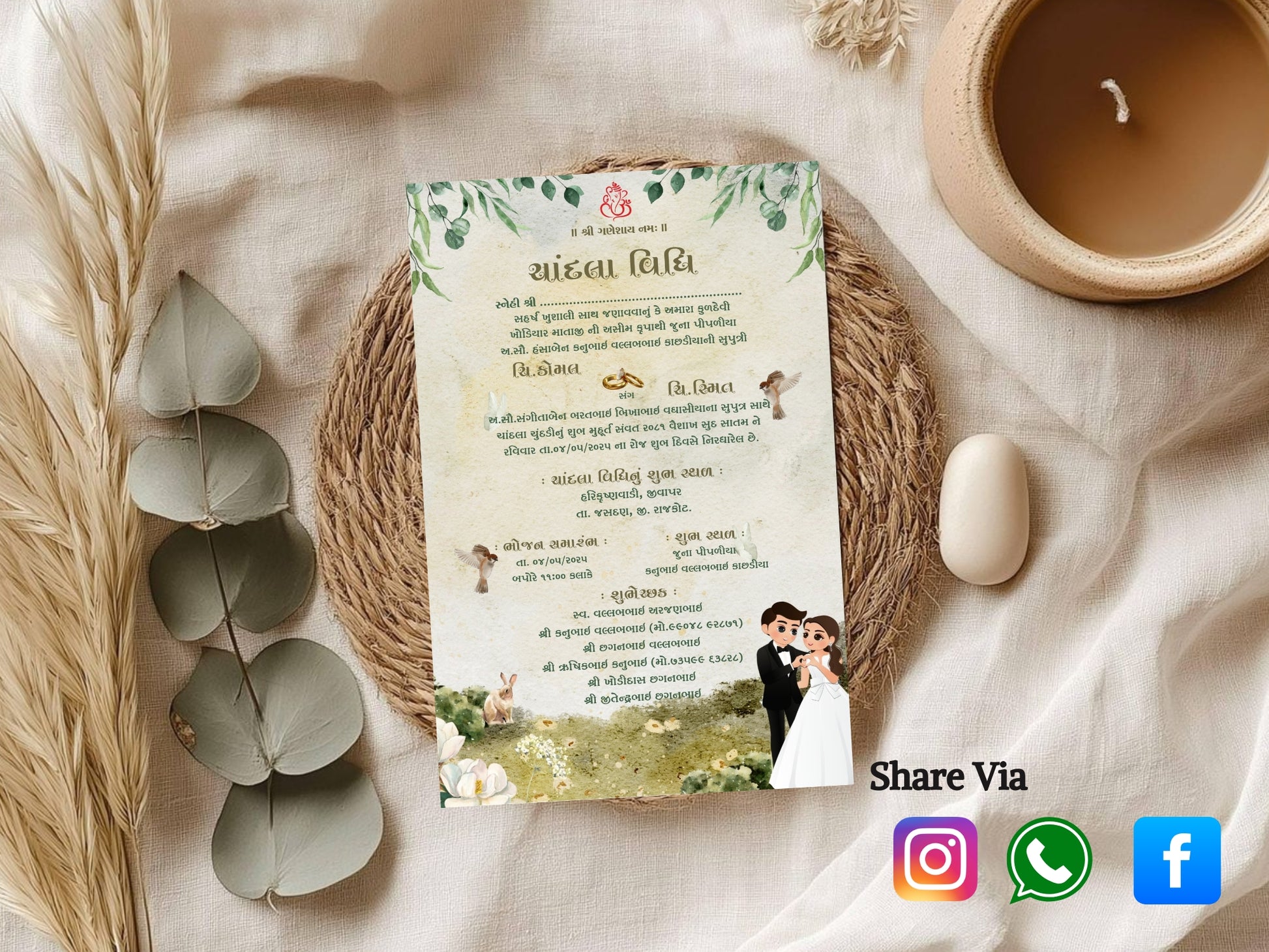 Celebrate your Chandla Vidhi ceremony in regal style with our Royal Theme Chandla Vidhi Card Design. Designed with luxury and tradition in mind, this card brings a sophisticated and grand touch to your invitations.